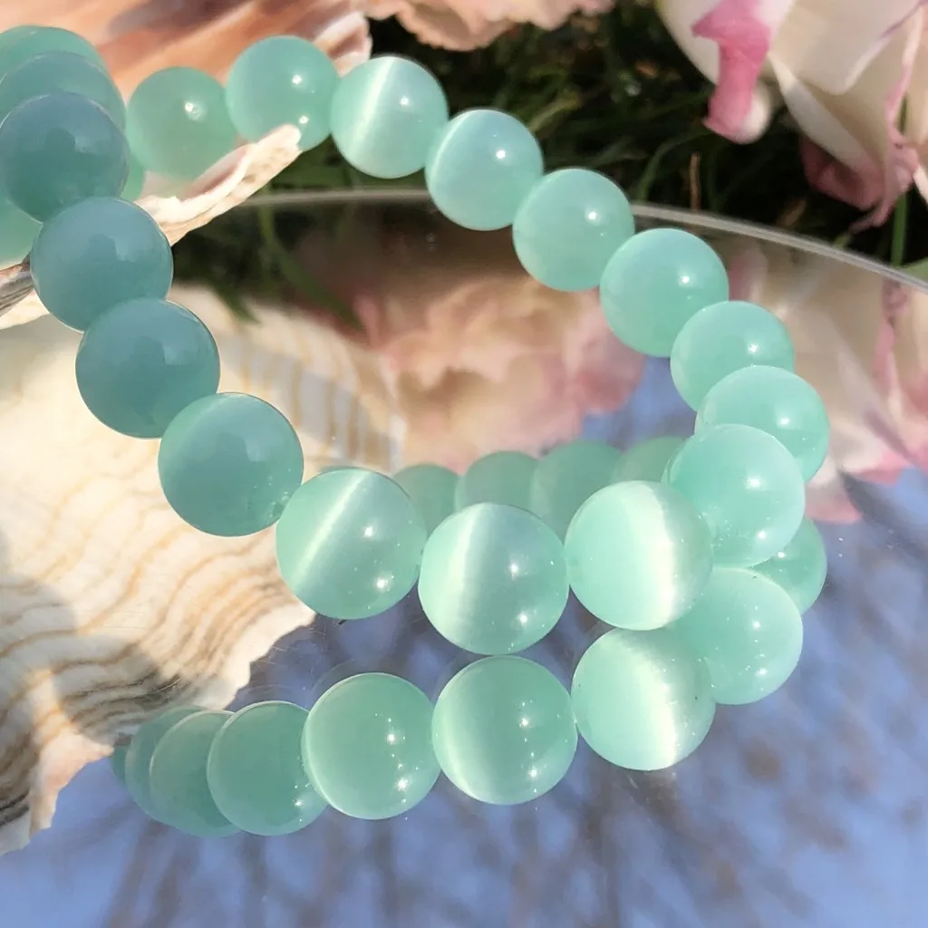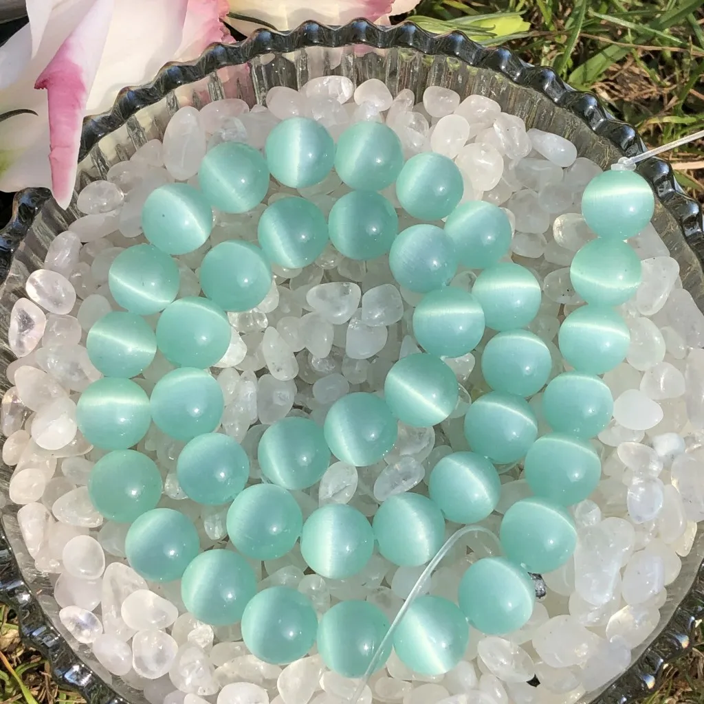 Бусины кошачий глаз из натурального камня, бусины из опалового стек...