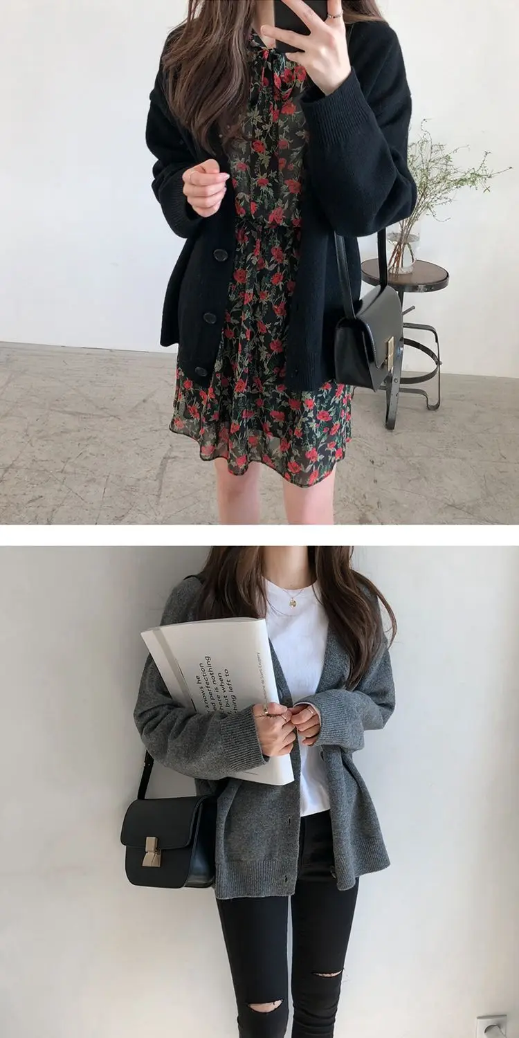 Кардиган женский однотонный, повседневный универсальный, с длинным рукавом, с V-образным вырезом, в Корейском стиле, для студентов, на весну