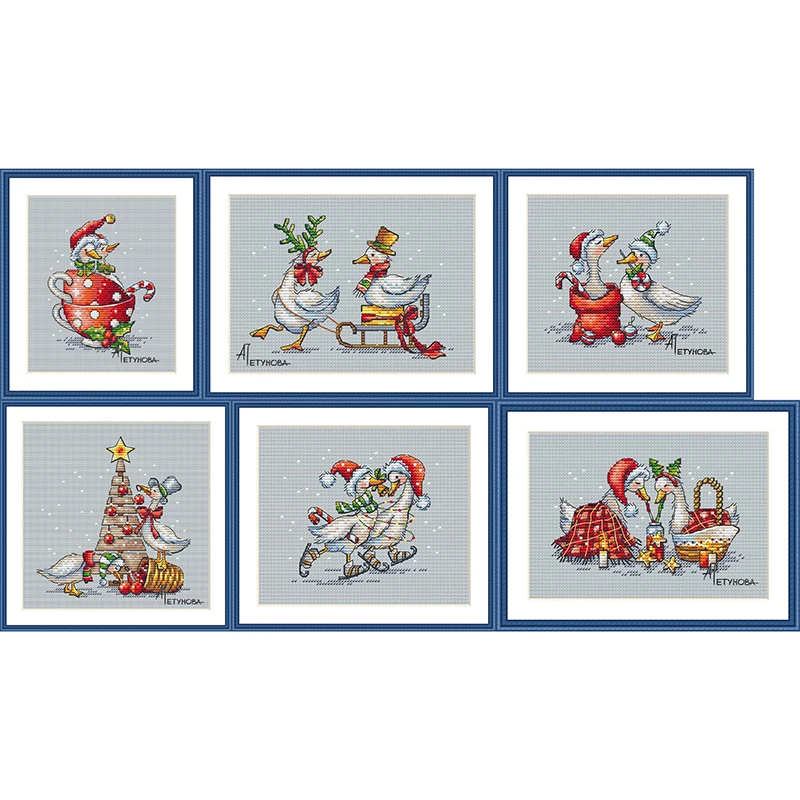 Набор для вышивки крестом, снеговики и олени, птицы, зима, снег, ту...