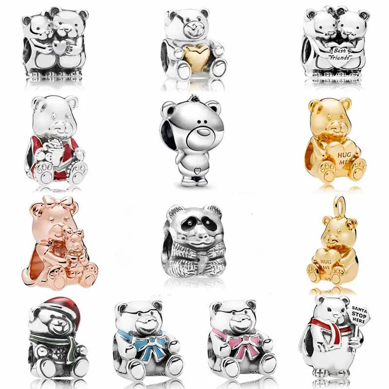 Браслет сделай сам из серебра 925 пробы с милой Тео милой тедди с бантом Дора и девочкой обнимающейся пандой с бусинами подходит для модных браслетов ювелирные изделия