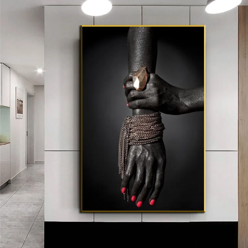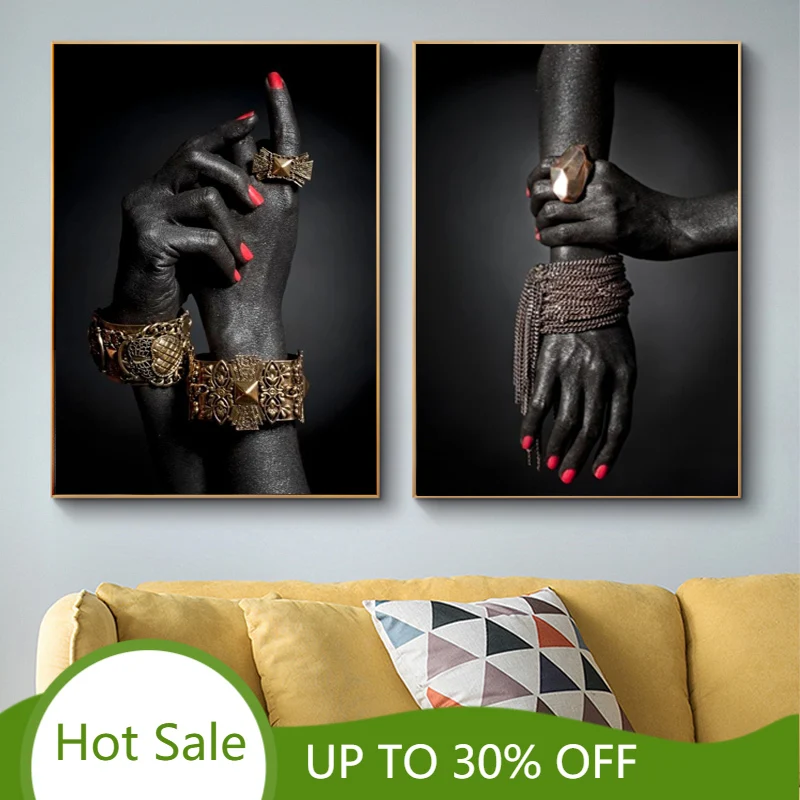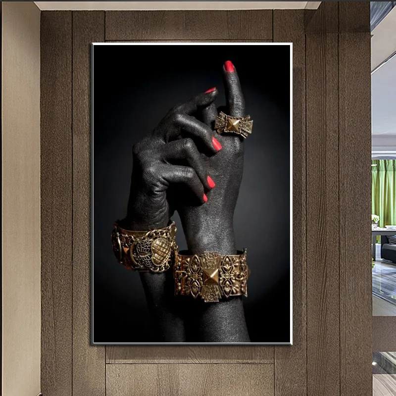 Африканский черный золотой ручной браслет картина маслом на холсте Африканское искусство настенные художественные Плакаты для гостиной