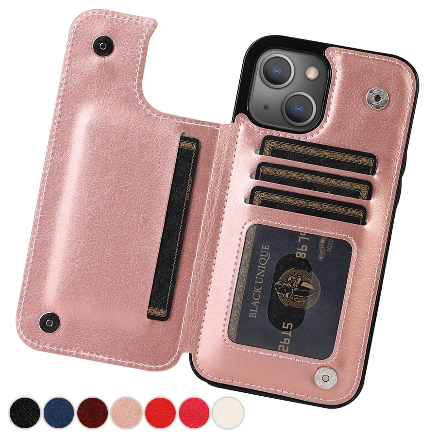 Чехол-бумажник из искусственной кожи с двумя кнопками для iPhone SE 2022 13 Pro Max 13 Mini 12 Pro Max 11 Pro Max X XR XS Max 8 7 6 6S Plus 5S SE