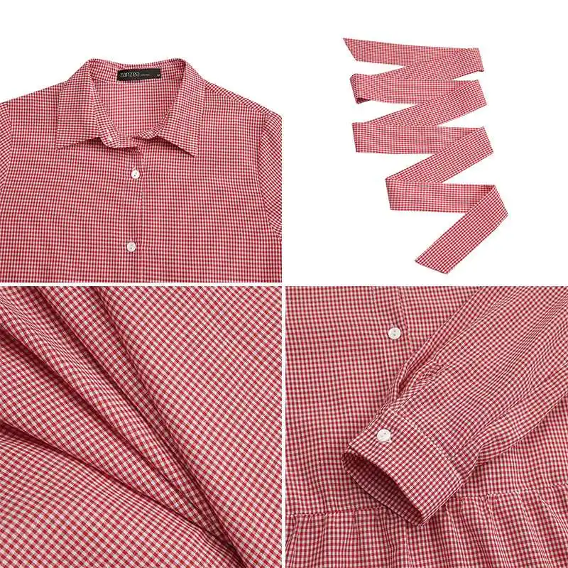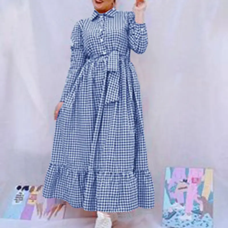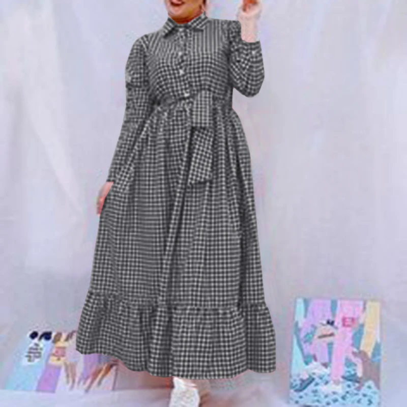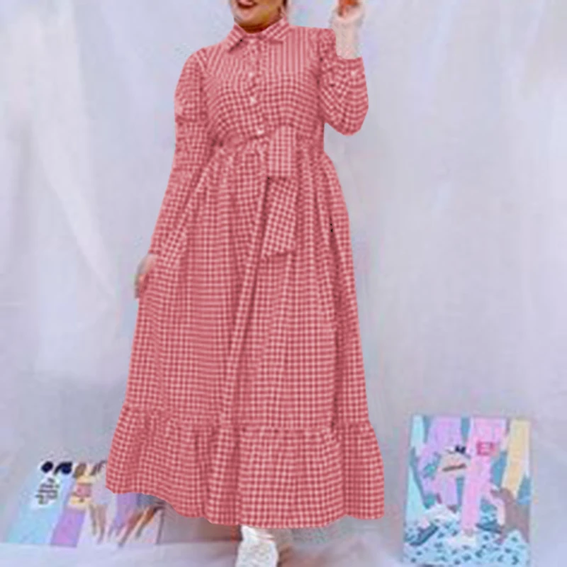 Винтажное Рубашка-Платье на пуговицах женское осеннее мусульманское платье ZANZEA повседневное длинное платье с длинным рукавом женское клетчатое сарафан-Халат