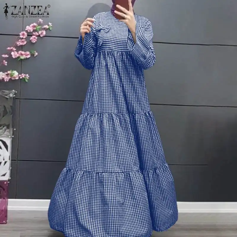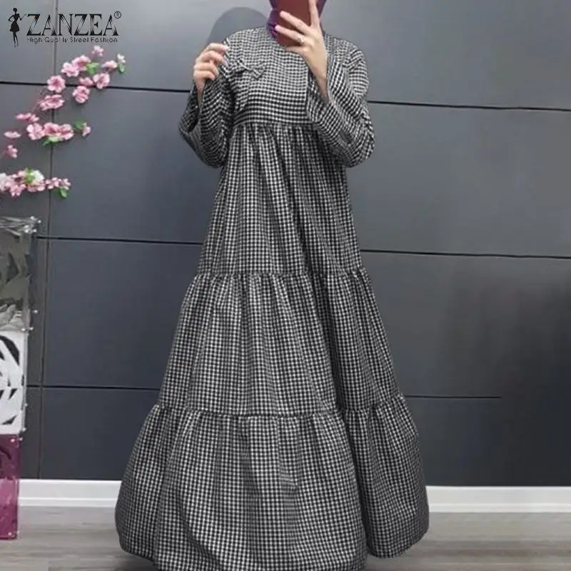 Повседневный клетчатый халат, осеннее платье-рубашка ZANZEA, праздн...