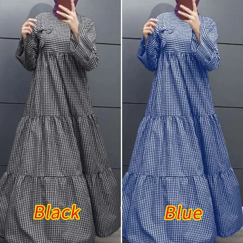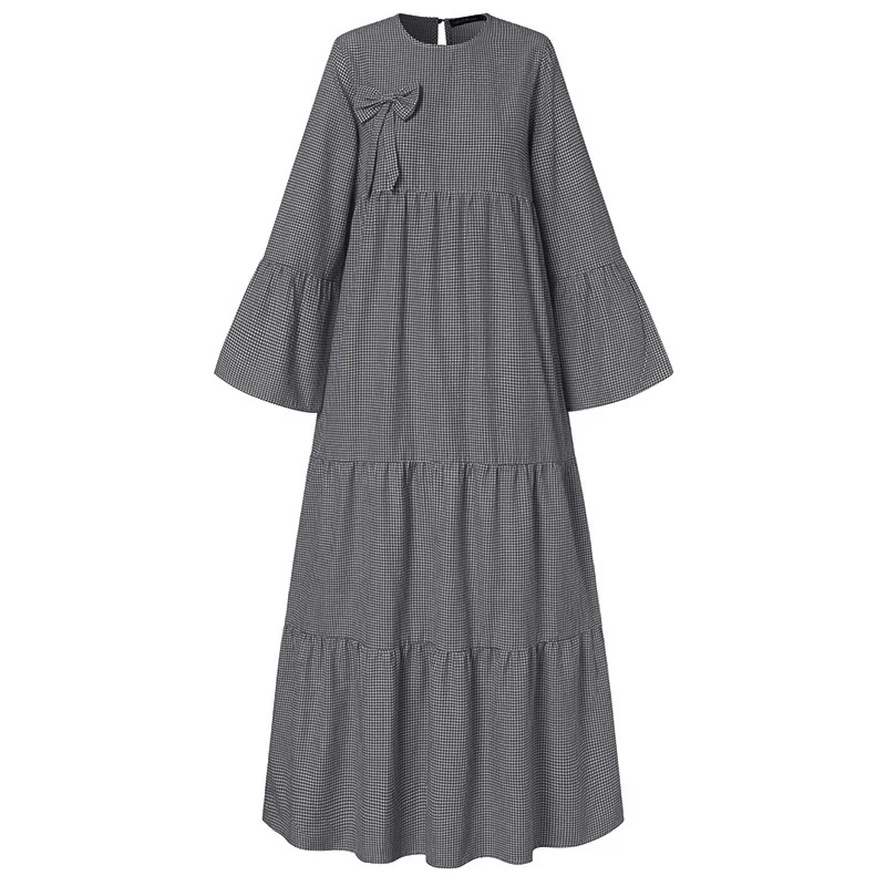 Женское длинное платье-рубашка, повседневное многослойное платье в клетку с бантом и длинным рукавом, в мусульманском стиле, 2021
