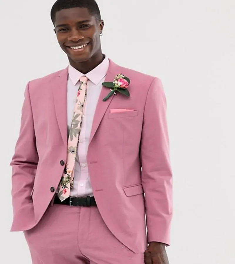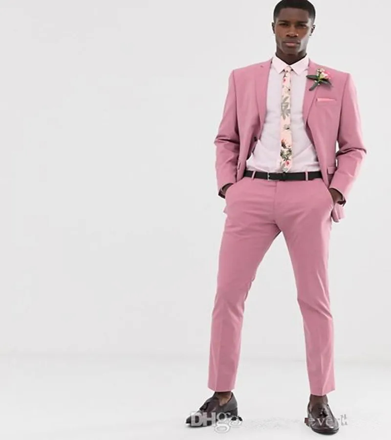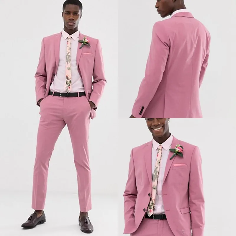 Новое поступление, повседневные розовые свадебные приталенные смокинги для шафера, мужские костюмы, Официальный Выпускной пиджак с отложным воротником, мужской костюм (пиджак + брюки)