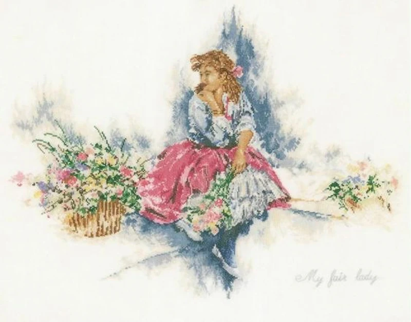 Подробное описание 2021 Золотой коллекции вышивка моя Ярмарка леди Смешные вышитые крестом подарки с 100% хлопковой нитью и бесплатная доставка для декора стен(Примечание: Мы делаем полное покрытие или не полное покрытие, это зависит от фона изображения)Производитель