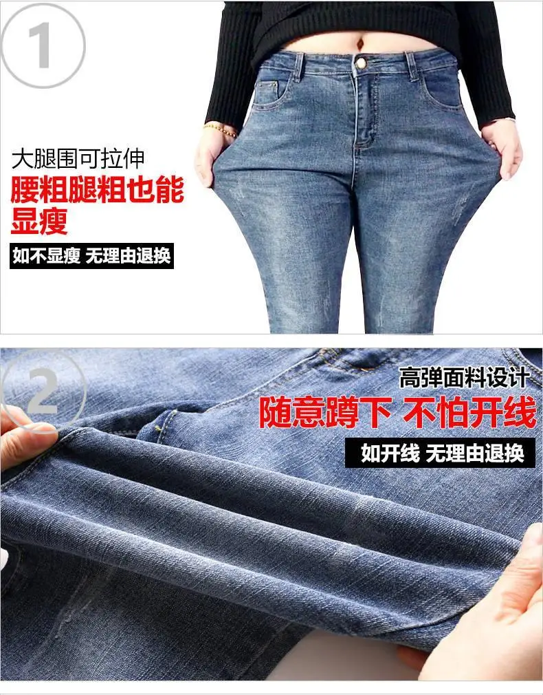 Женские джинсовые брюки, эластичные брюки с высокой талией, женские брюки с разрезом, размера плюс