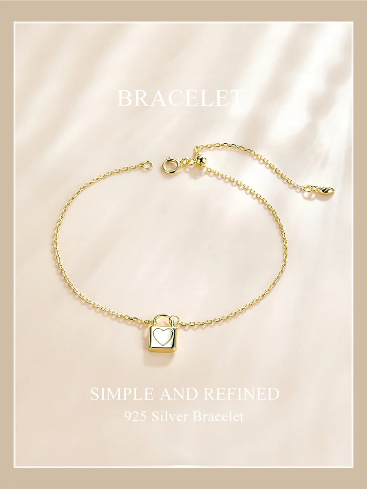 Браслет женский из серебра 925 пробы с замком в форме сердца