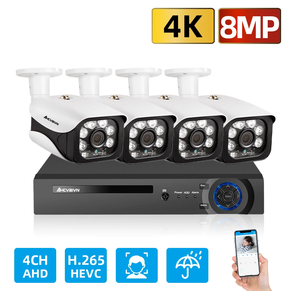 Система видеонаблюдения, 4K, 4 канала, 8 Мп, 6 ИК светодиодных камер