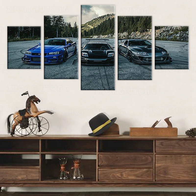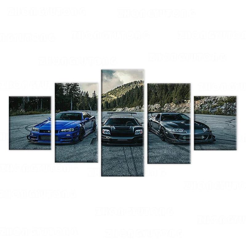 Картина на холсте автомобиля Supra NSX vs Skyline R34, постер с абстрактным принтом, большие настенные картины для гостиной, 5 шт.