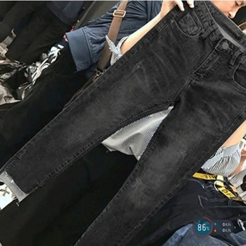 Джинсы женские с высокой талией, брюки с рваными дырками, одежда больших размеров, летние брюки