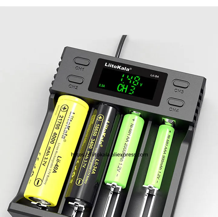 Умное устройство для зарядки никель-металлогидридных аккумуляторов от компании Liitokala: Зарядное устройство Lii-M4 Ёмкость тест 1,2 VNIMH 3,7 V литий-ионный аккумулятор AAA C SC 18650 26650 21700 18500 14450 10440 вх