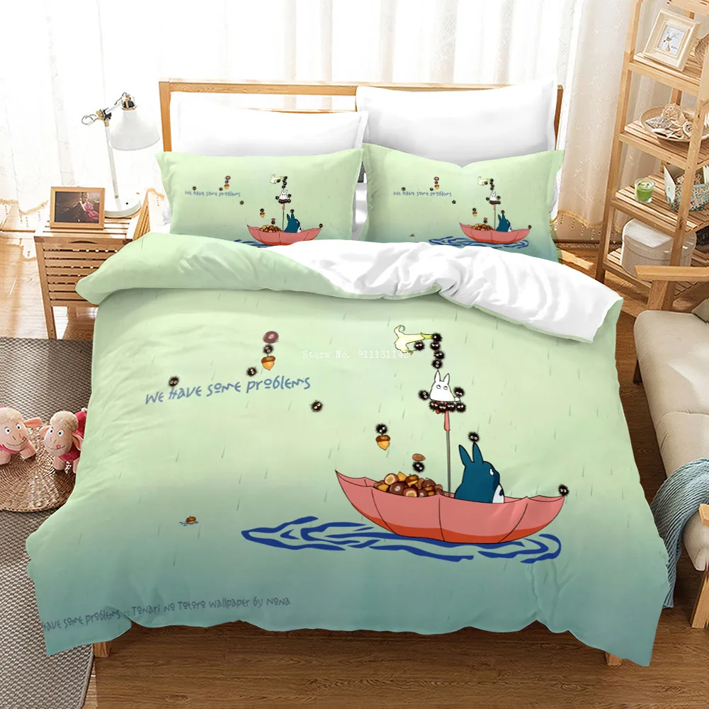Комплект постельного белья Totoro с принтом, симпатичный комплект из 23 предметов, с наволочкой, в японском стиле аниме, для детской спальни, домашний текстиль
