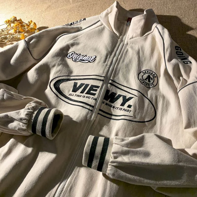 Куртка женская, свободная, с вышитыми буквами, в стиле Харадзюку, н...
