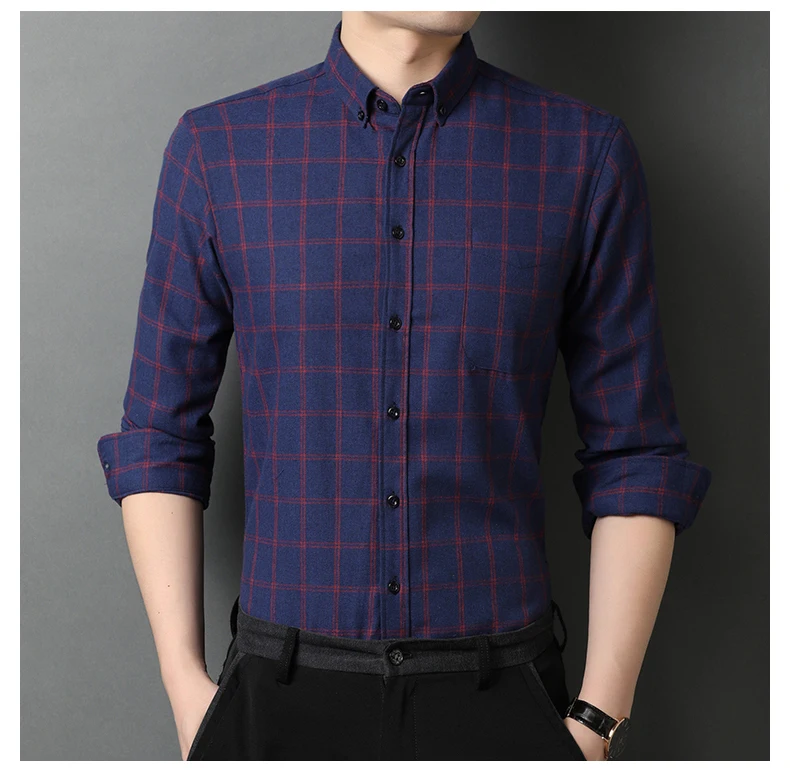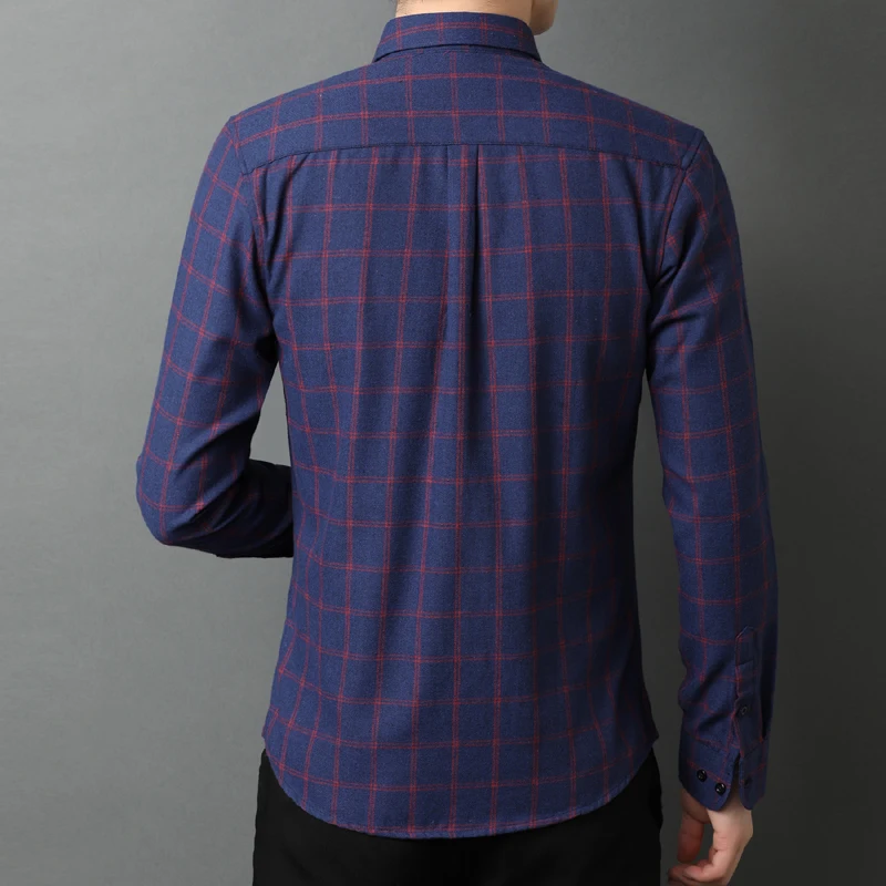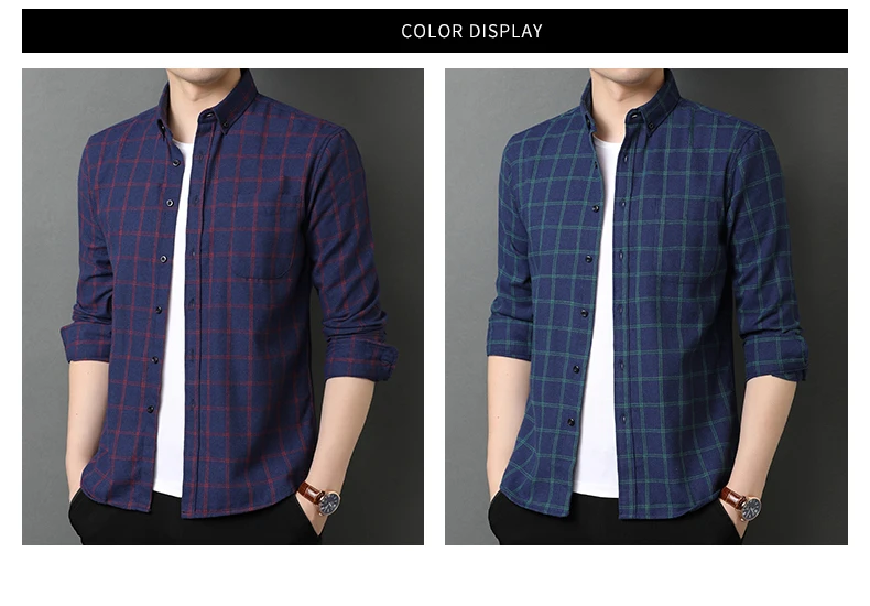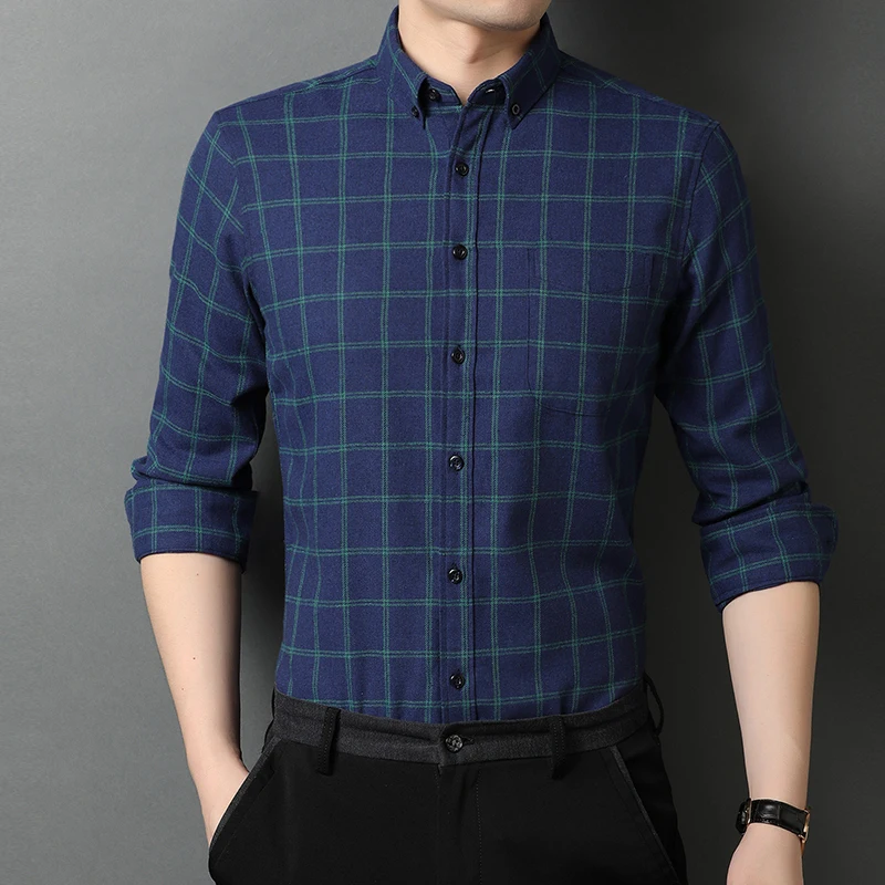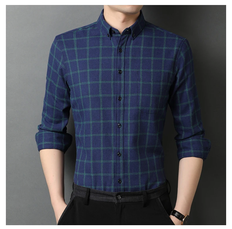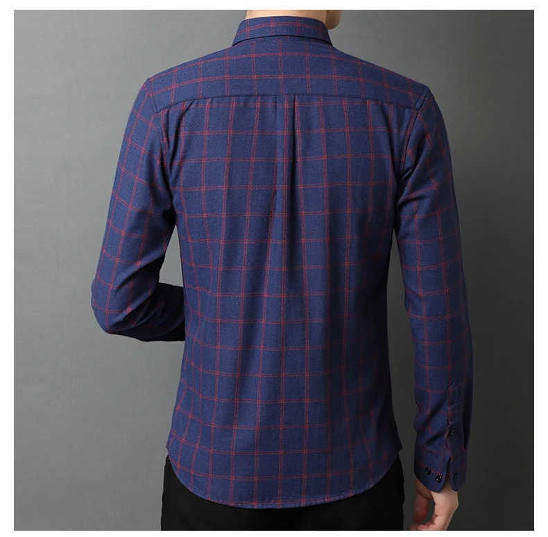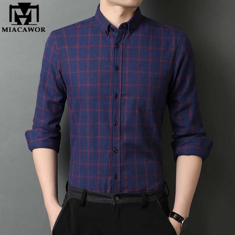 Мужская рубашка с длинным рукавом MIACAWOR, повседневная приталенная рубашка в клетку, на весну, C732