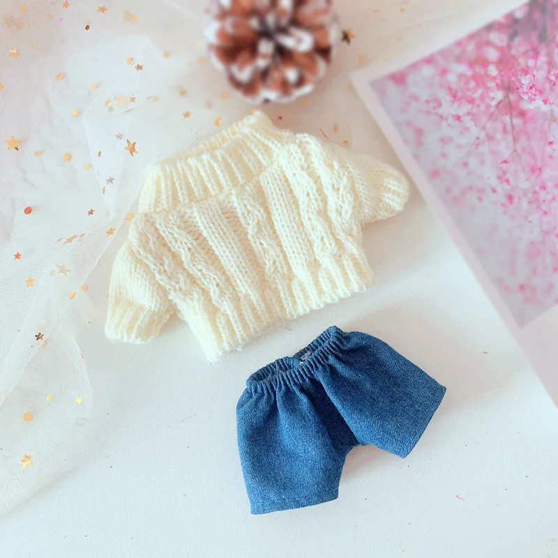 Чистый белый Конопляный свитер набор 20 см кукла ткань любовь фасол...