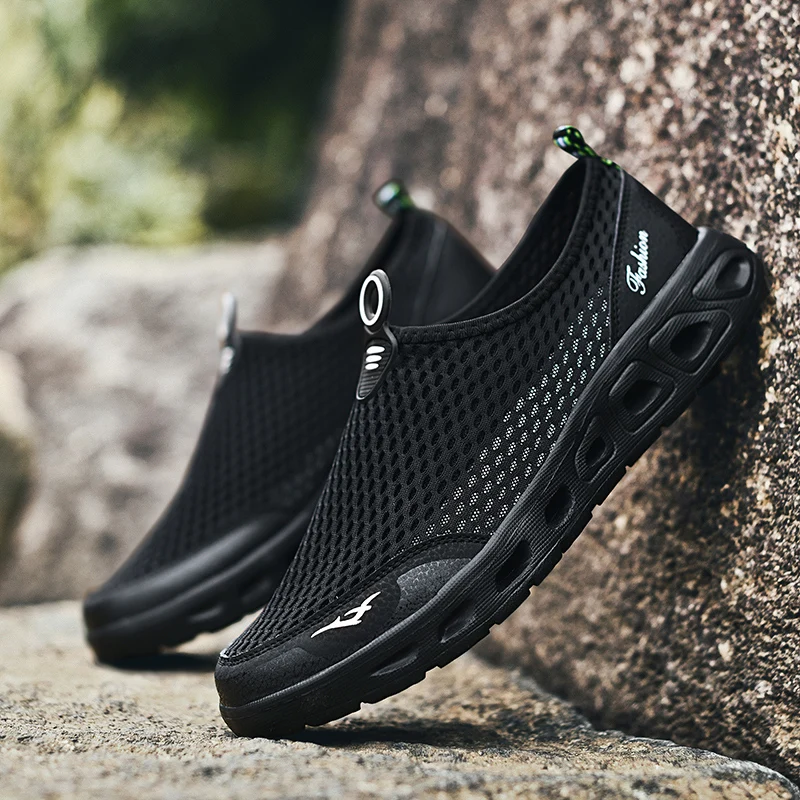 Летняя водонепроницаемая обувь; Мужская пляжная обувь из сетчатого материала; Водонепроницаемая обувь; Быстросохнущие дышащие женские кроссовки без шнуровки для плавания по реке и морю; Размеры 35-48