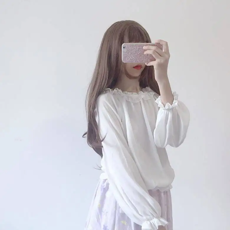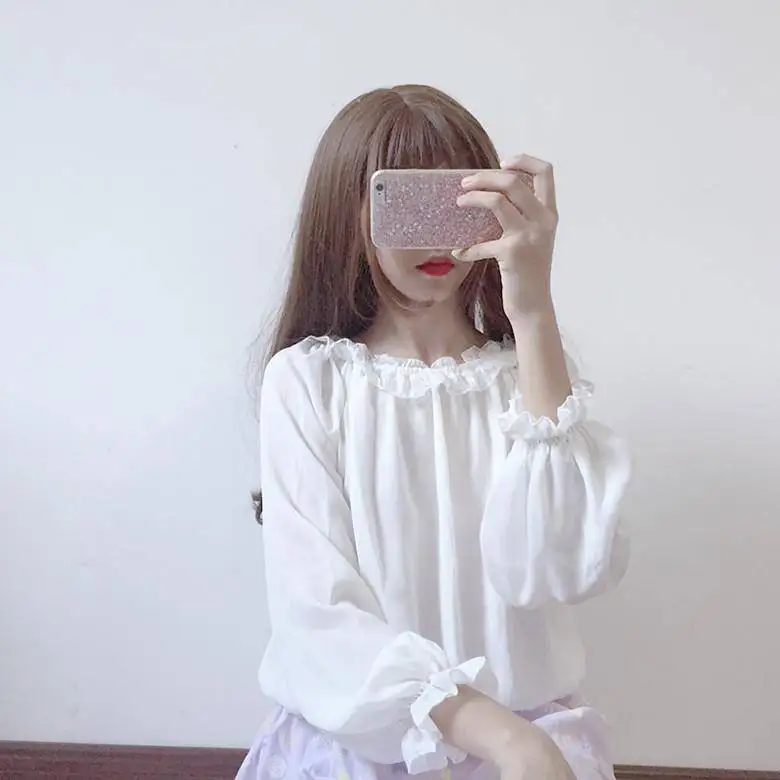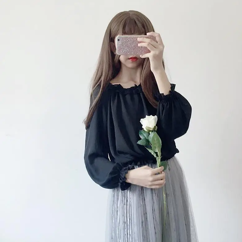 Женская шифоновая блузка, женская рубашка с длинным рукавом, топ с епископским рукавом, Женская свободная кружевная рубашка, сказочные блузы, Ropa De Mujer