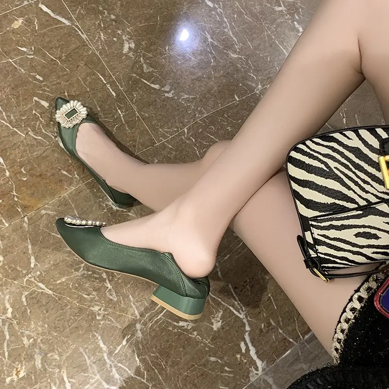Женские босоножки с ремешком на пятке, туфли-лодочки с бусинами и ж...