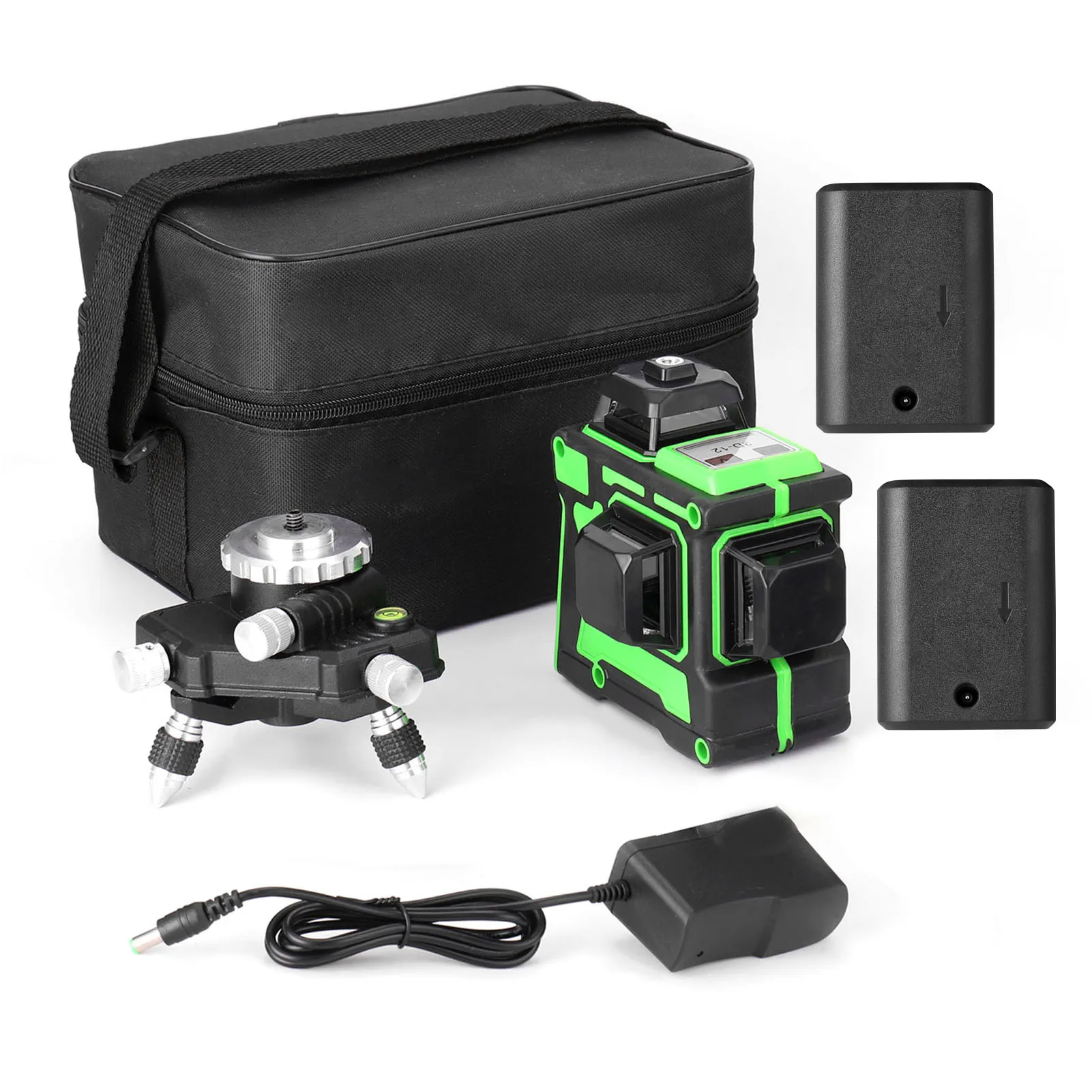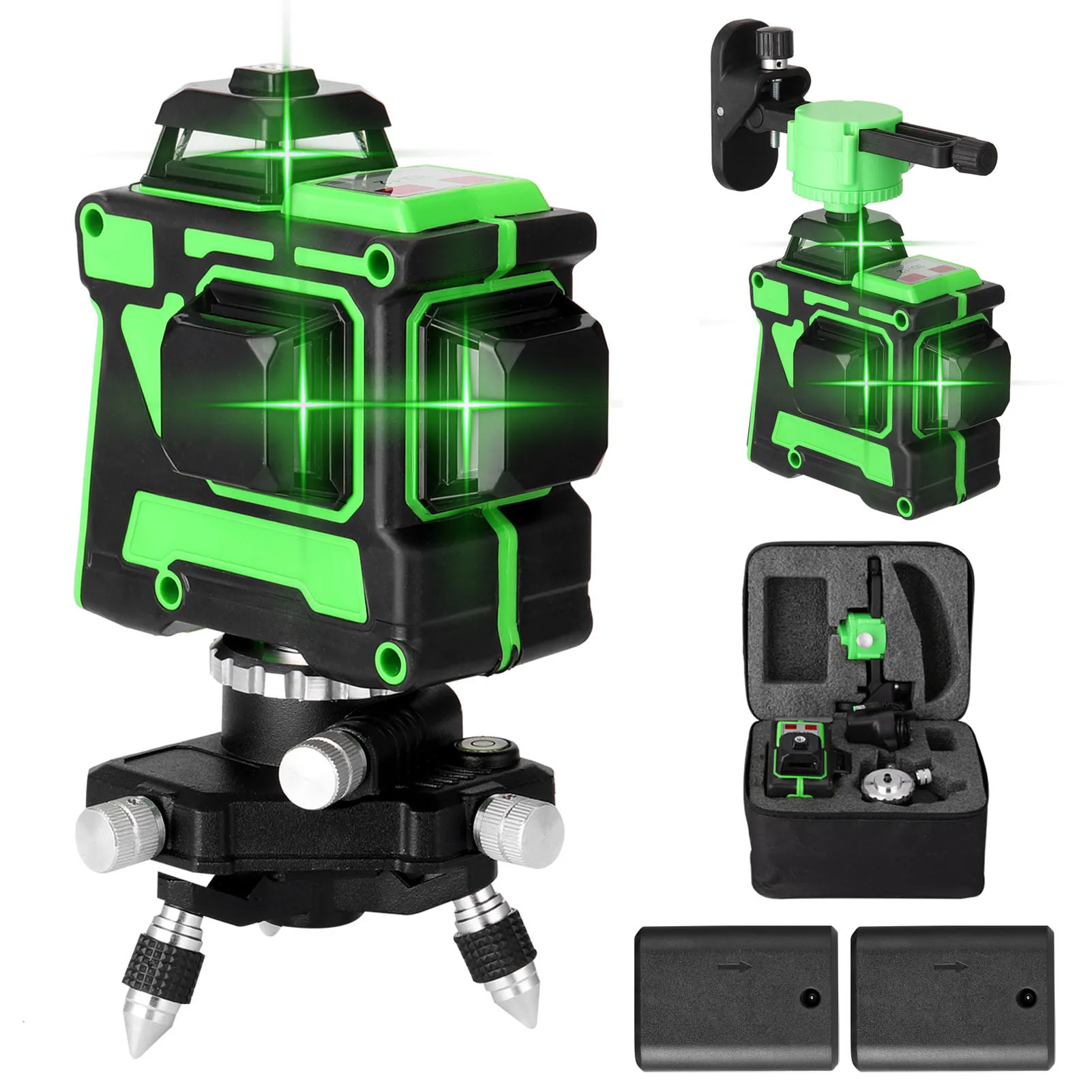 Лазерный уровень, 12 линий, 3D самонивелирующийся на 360 градусов, горизонтальный и вертикальный крест, сверхмощный зеленый лазерный луч