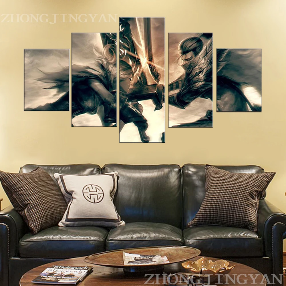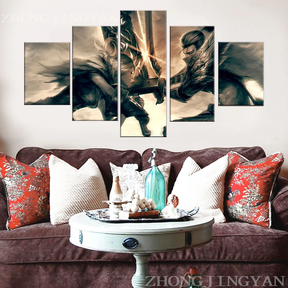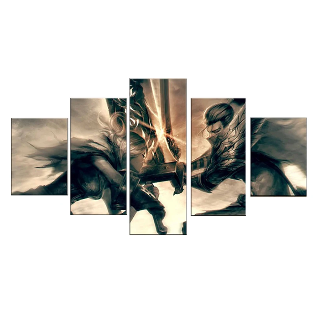 5 панелей, Lol League Of Legends Riven Vs Yasuo Game, холст с принтом, картина для гостиной, настенное искусство, домашний декор, картина, плакат