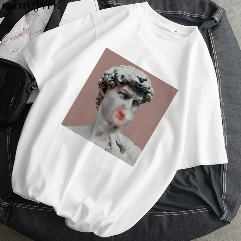 Женская футболка большого размера с принтом Monla Lisa Ulzzang, летняя белая футболка в стиле Харадзюку с коротким рукавом и круглым вырезом, 2021