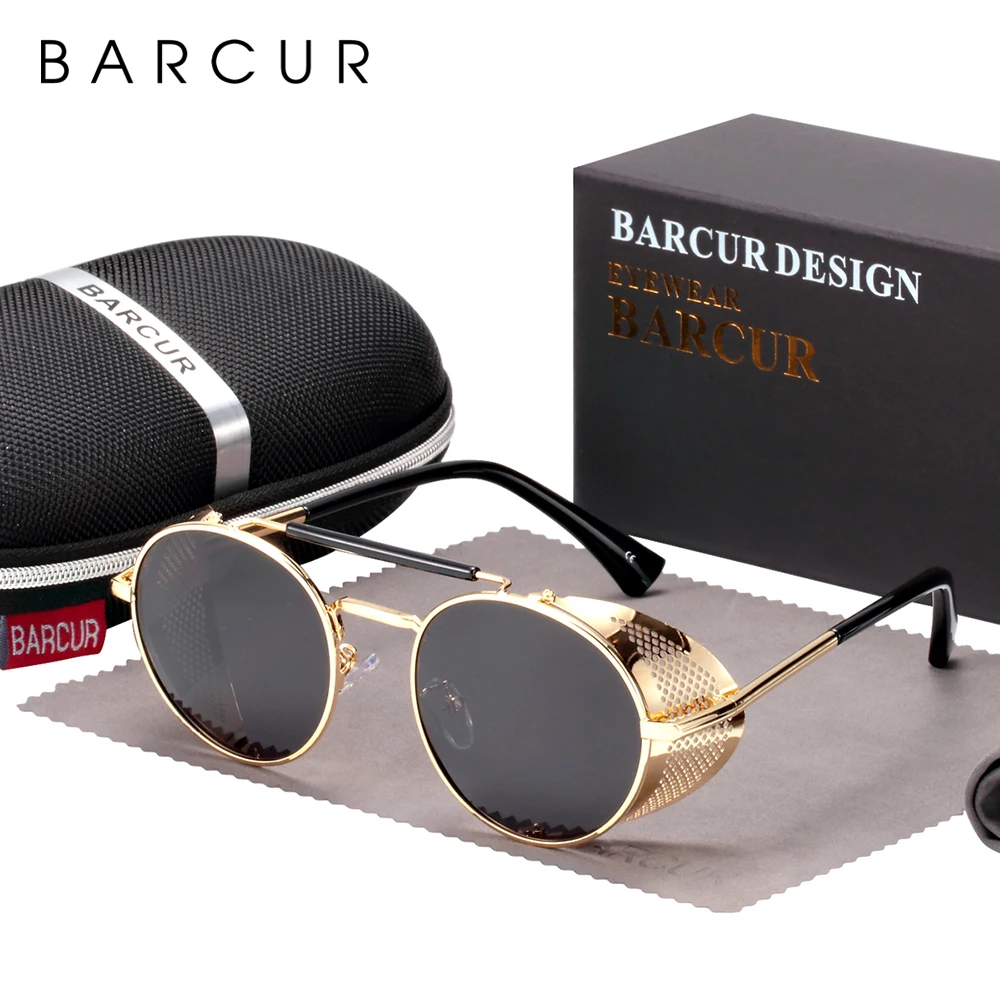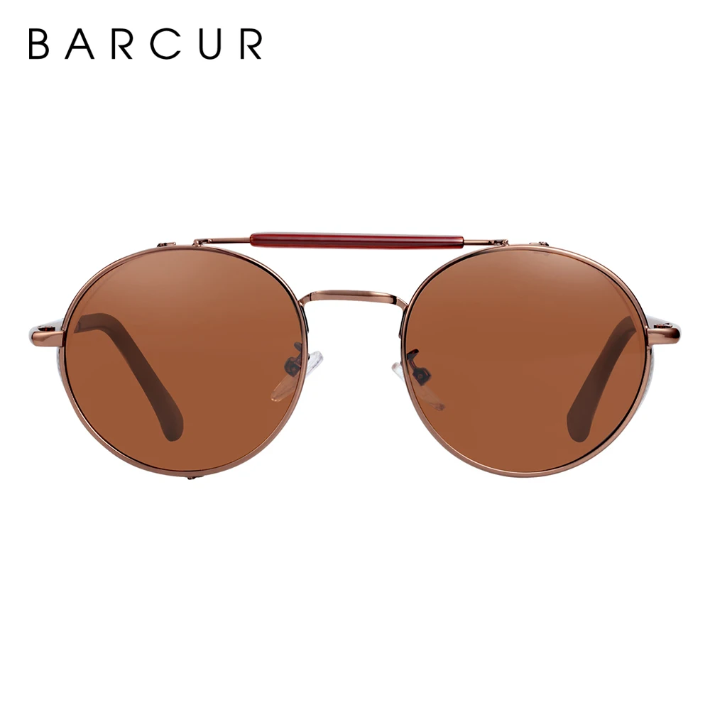 Солнцезащитные очки BARCUR в винтажном стиле UV400 для мужчин и женщин, поляризационные круглые солнечные аксессуары в стиле стимпанк, ретро