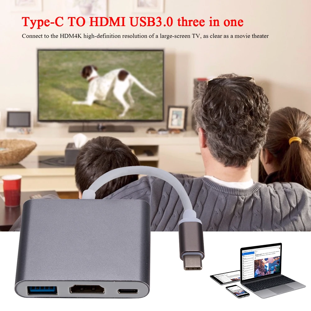 Кабель-преобразователь 3 в 1, 4K 1080P Type C на HDMI-совместимыйUs...