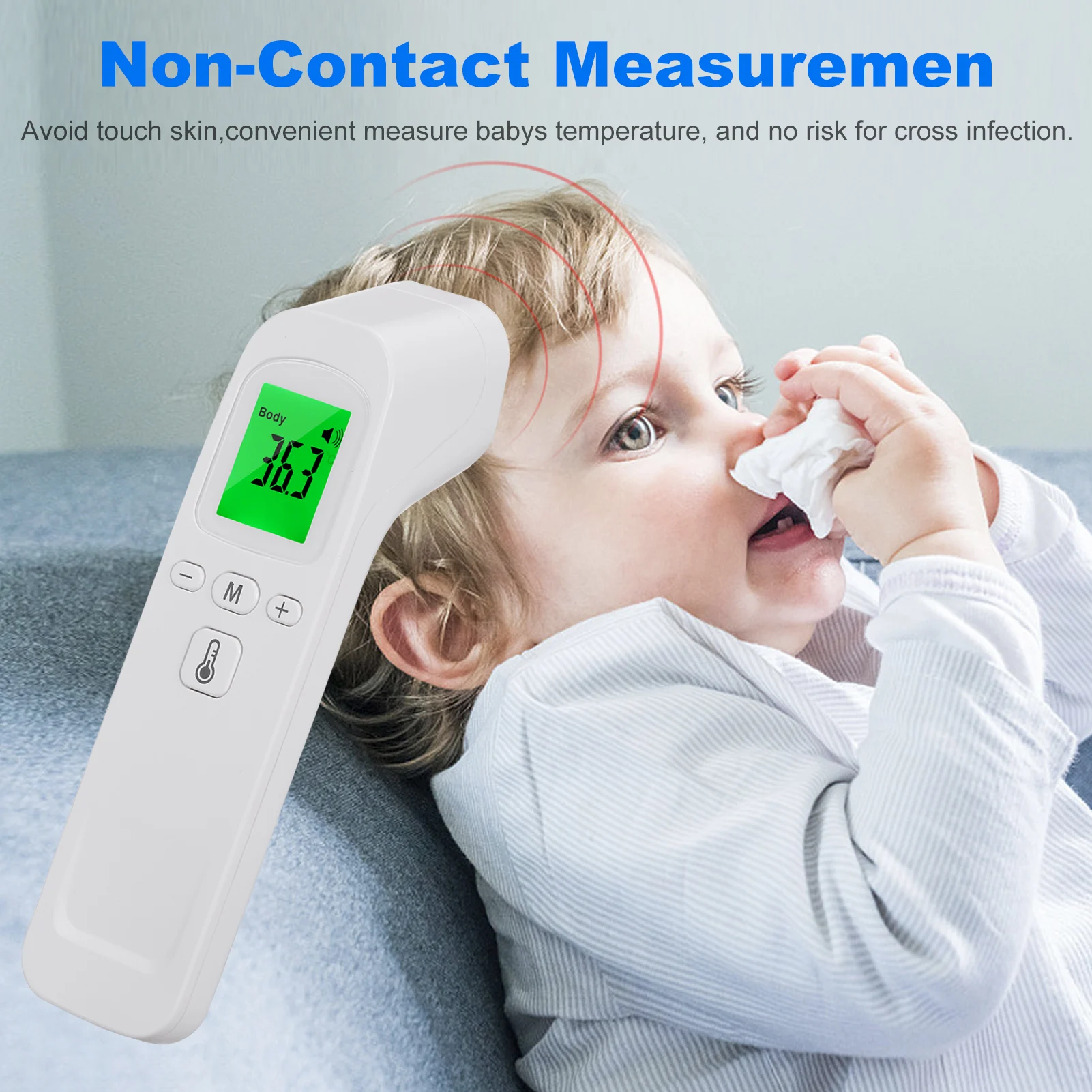 Особенности:Бесконтактное измерение --- портативный цифровой инфракрасный термометр Температурный пистолет. Избегайте касания кожи, удобно измеряйте температуру малышей и не подвергайте опасности перекрестной инфекции.Мгновенное считывание термометра --- нажмите кнопку измерения, и результат будет поставлен в одну секунду. Не нужно ждать, мы можем заботиться о ребенке с термометром внутри и снаружи.Большой экран и Температурная сигнализация --- пользователь может свободно устанавливать температуру сигнализации в соответствии с его собственной ситуацией. Большой ЖК-дисплей, белый задний светильник, может быть четко отображен под любой светильник.Удобные функции памяти-вы можете хранить до 32 наборов показаний записаны для лучшего отслеживания изменений температуры тела, поддержки клинической фебрильной диагностики. Это удобно для малышей, детей, детей, взрослых, младенцев, малышей. Также имеет функцию автоматического отключения для энергосбережения.Многорежимный термометр --- инфракрасный термометр не только поддерживает функцию лба, но может принимать температуру помещения/объекта. ℃ и ℉ легко переключаются.Как включить/выключить питание:Нажмите кнопку M butoon для включения.Нажмите кнопку M снова, чтобы выключить или автоматически выключить питание без работы в 18s.Как измерить температуру:Точка на лоб с расстоянием 3-5 см.Нажмите самую большую измерительную кнопку для измерения.Как переключить режим измерения:Включите устройство и нажмите кнопку «-» около 3 с, чтобы переключить режим body/object.Как переключить ℃/℉:Выключите устройство, нажмите кнопку «-» около 5s, пока знак «Fl» не появится в левом углу, нажмите кнопку «-» 3 раза, пока «Fl» не превратится в «F4», и блок температуры появится в правом углу, переключитесь между ℃/℉ нажатием кнопки «+», И выключите устройство для экономии.F1: переключатель зуммераF2: настройка температуры сигнализацииF3: регулировка температурыF4: регулировка температурыХарактеристики:Цвет: белыйМатериал: АБС-пластикДисплей: ЖК-дисплейЕдиница измерения: °C/ °FРежим человеческого тела: 34 ℃-43 ℃ (93,2 ℉-109,4 ℃)Режим объекта: 0 ℃-99,0 ℃ (32 ℉-210,2 ℃)Аккумулятор: 2 * AAA батареи (не входят в комплект)Расстояние измерения: 3-5 смВремя реакции: 0.5SРазрешение дисплея: 0,1 ℃Функция памяти: 32 значения памятиВыключение автоматически: 18sРазмер: 16*4*4 смВес посылка: 86 гУпаковочный лист:1 Инфракрасный термометр1 руководство пользователя на английском языке