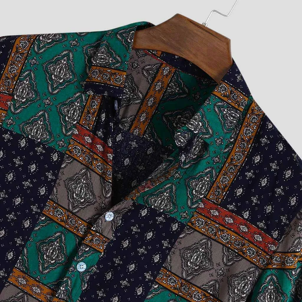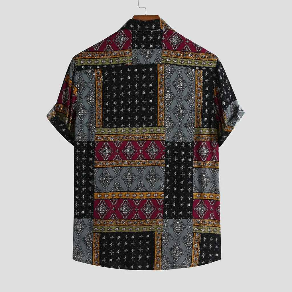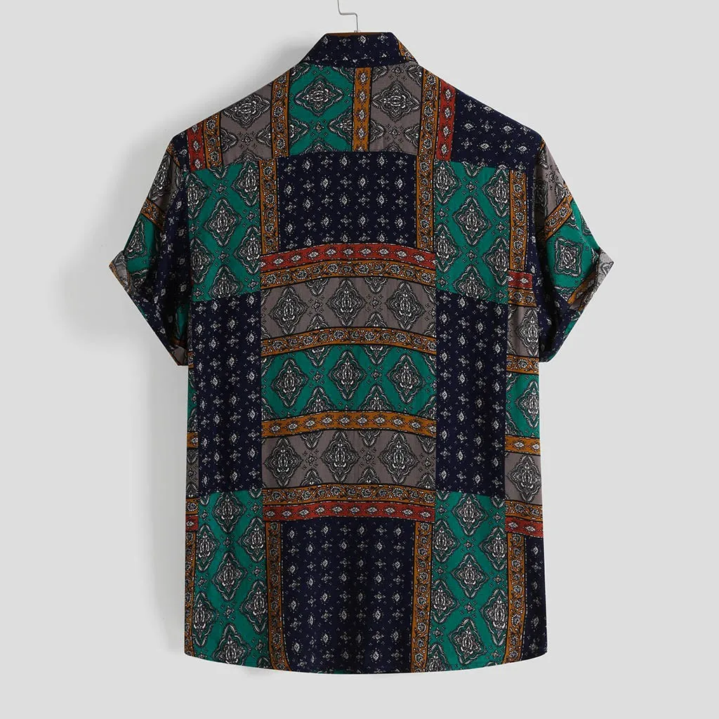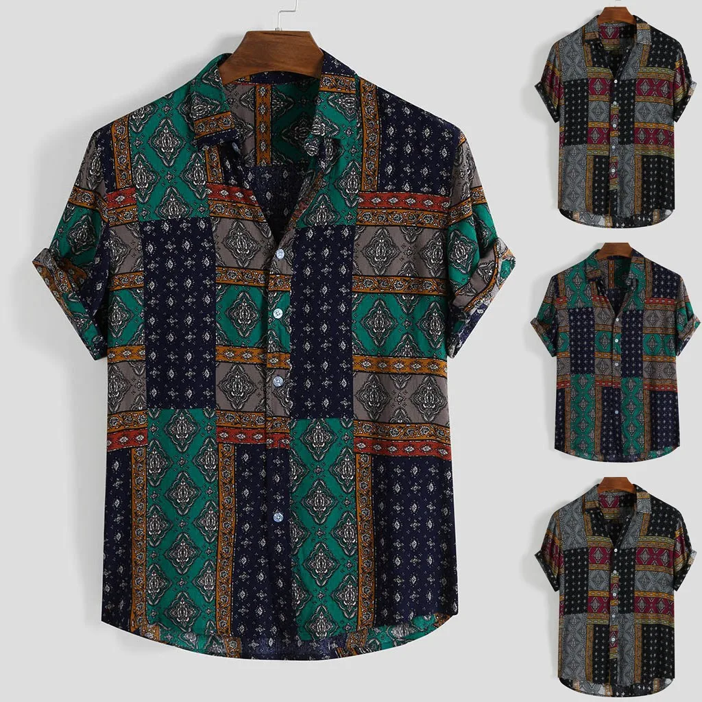 Мужская летняя рубашка в этническом стиле с коротким рукавом, Свободная Повседневная рубашка с пуговицами, топы