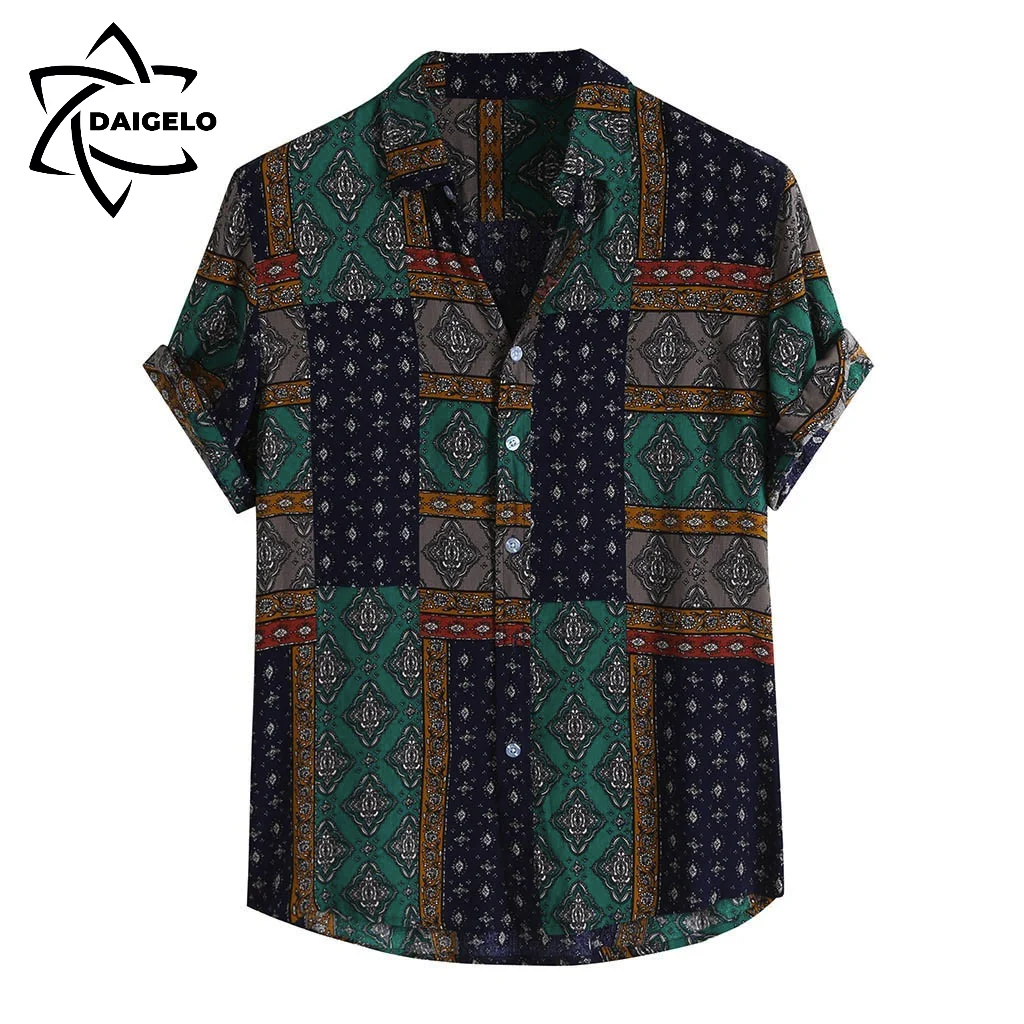 Рубашка DAIGELO мужская с отложным воротником, повседневная Гавайская футболка с короткими рукавами, на пуговицах, в стиле ретро, летняя одежда