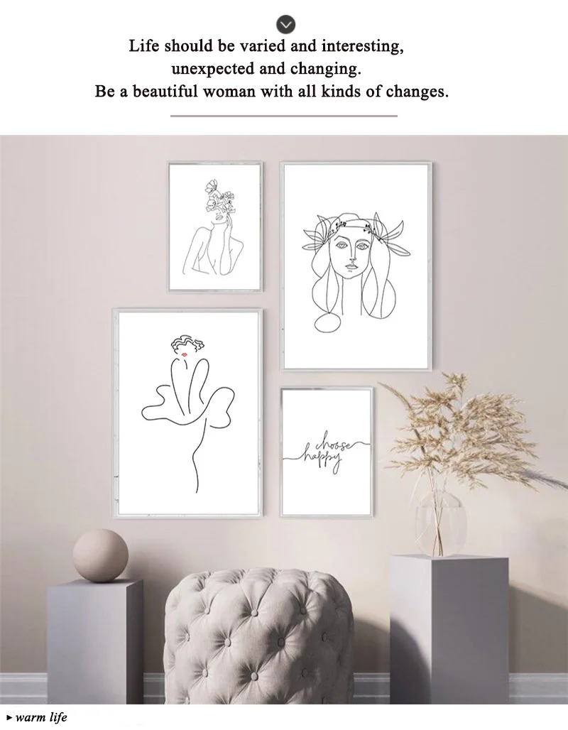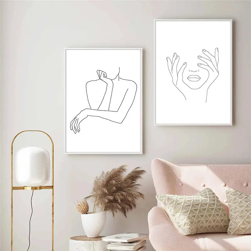 Настенный плакат в скандинавском стиле, рисунок на линии в минималистском стиле, женщина с цветами, плакаты и принты, Картина на холсте, сексуальная женщина, домашний декор