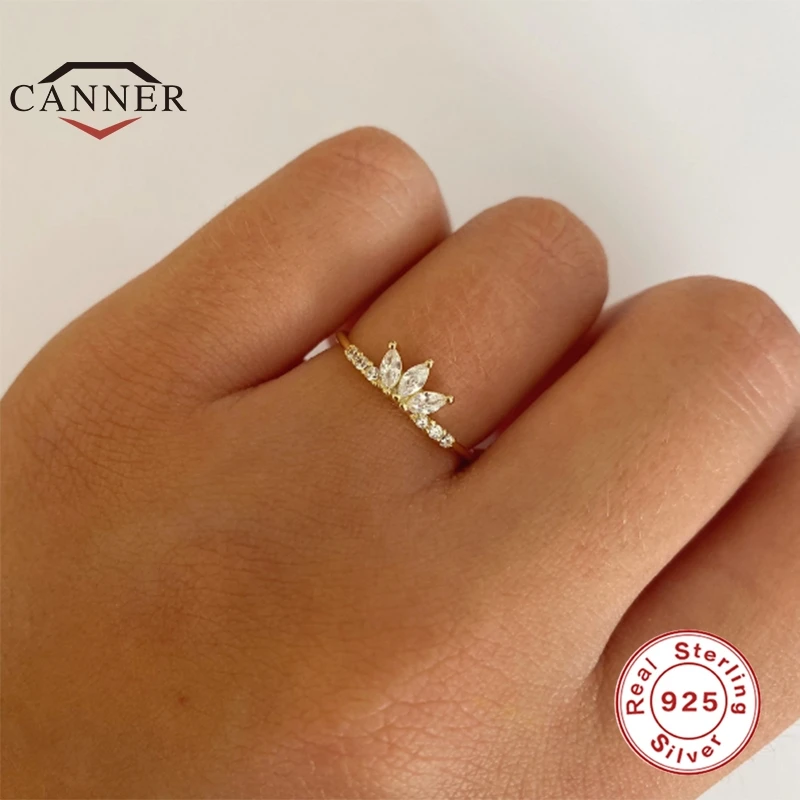 Женское кольцо с фианитом CANNER, изысканное простое кольцо с покрытием из настоящего 925 пробы золота 18 К, Размер 678