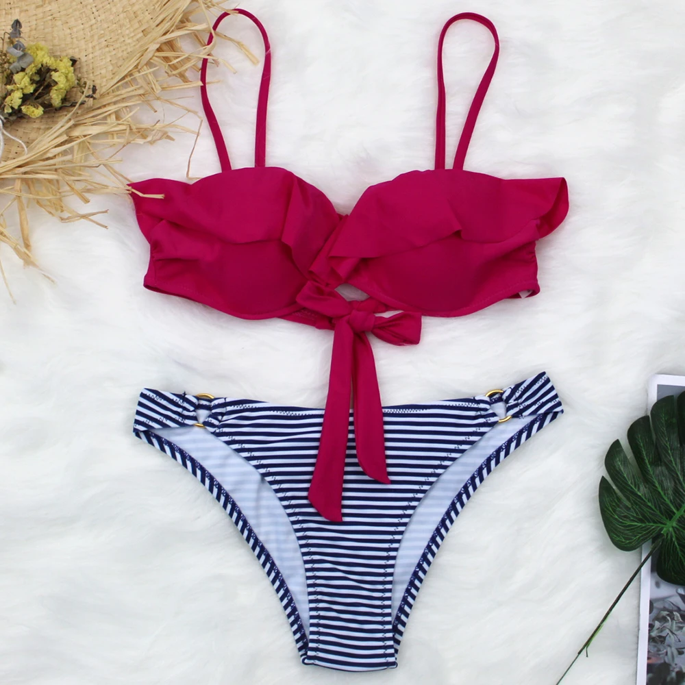 2021 женский купальник из двух частей бикини Полосатые Купальники Л...