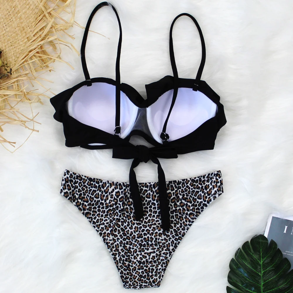 Женский купальник с леопардовым принтом, купальный костюм из двух п...