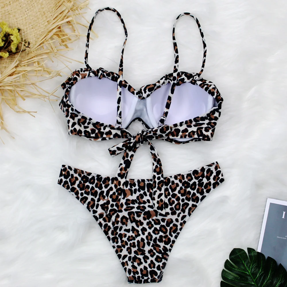 Леопардовый комплект бикини 2022, пляжный купальный костюм на шнуро...