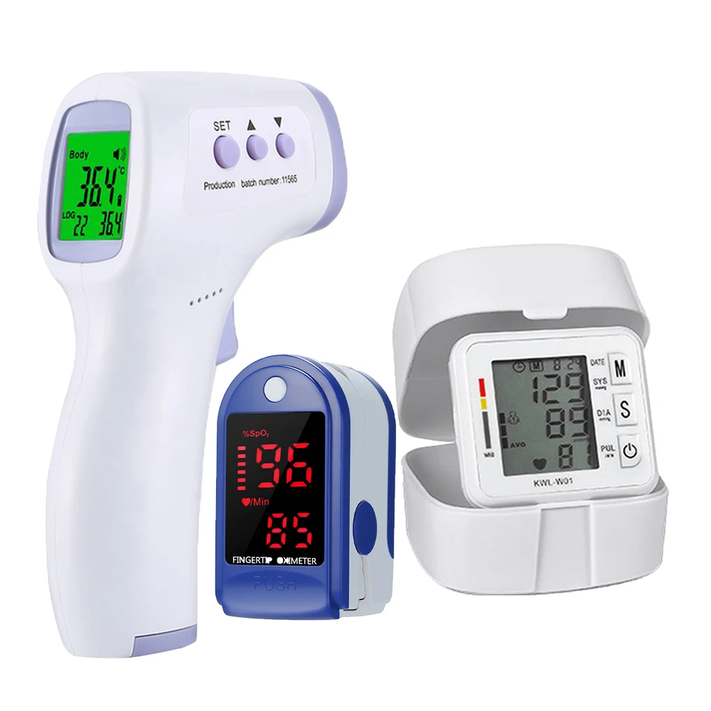 Пульсоксиметр на палец, пульсометр + Инфракрасный цифровой термометр + автоматический тонометр на запястье для измерения артериального давления