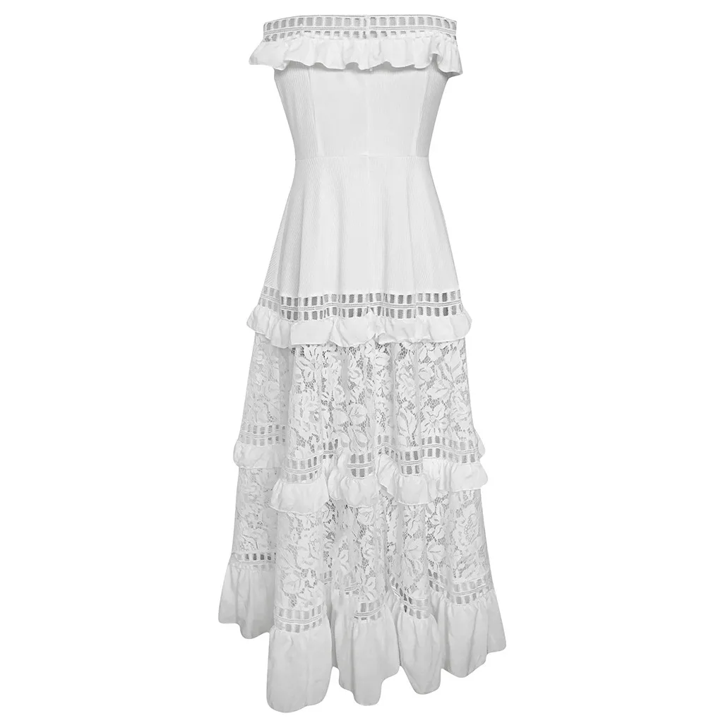 Платье DAIGELO женское кружевное в стиле бохо, праздничный Однотонный сарафан с вырезом-лодочкой, элегантная Макси-юбка, лето размера плюс