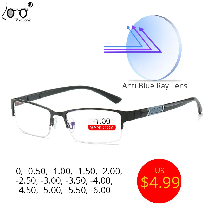 Анти-синий светильник, компьютерные очки для близорукости, женские мужские очки, оправа 0-0,50-1,00-1,50-2,00-4,00-4,50-5,00-6,00