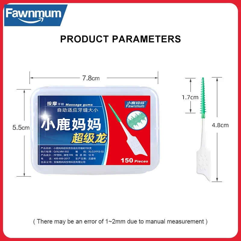 2x150 шт., силиконовые межзубные щетки Fawnmum, для массажа, для чистки зубов