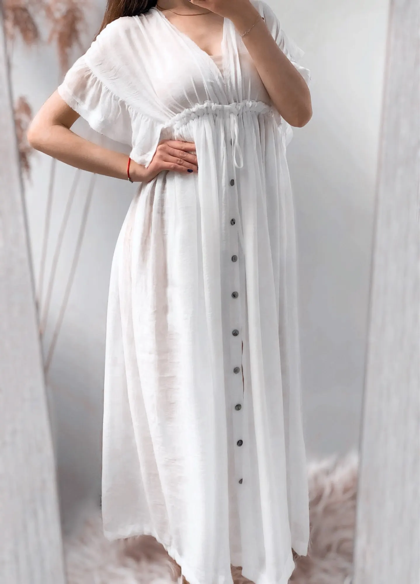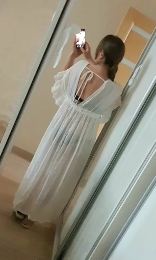 Девочки, туника просто суперская! Когда я увидела ее на али, сразу поняла, что это то, что мне нужно. Давно искала подобную пляжную тунику и наконец-то я ее нашла. Нравится в ней все, а особенно радует, что есть рукавчик. После загара и чтобы не обгореть он будет очень кстати. Материал туники воздушные и полупрозрачный, гладится хорошо, почти не мнётся. В составе хлопок . Пошив отличный, никаких лишних ниток и неприятного запаха нет. Застегивается на пуговички, так же есть внутренняя тесемка, в которую пролёт шнурок в цвет платья.