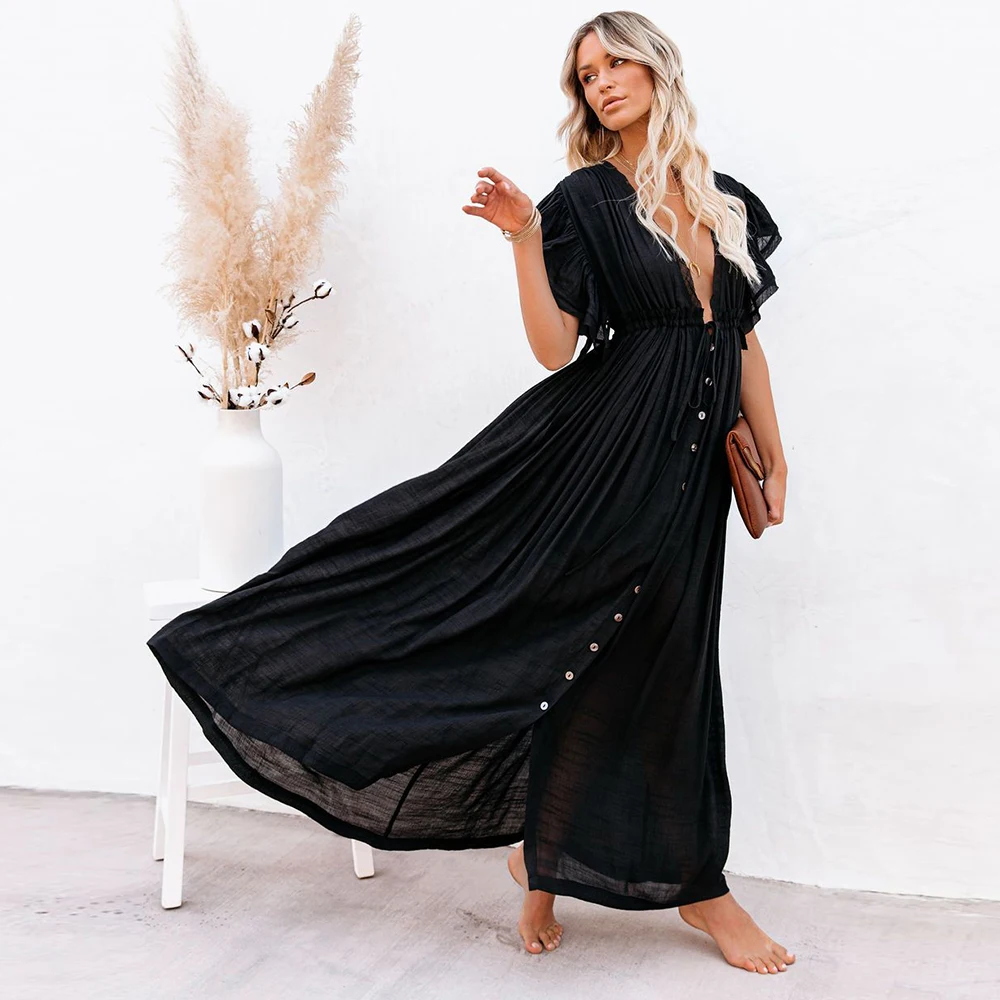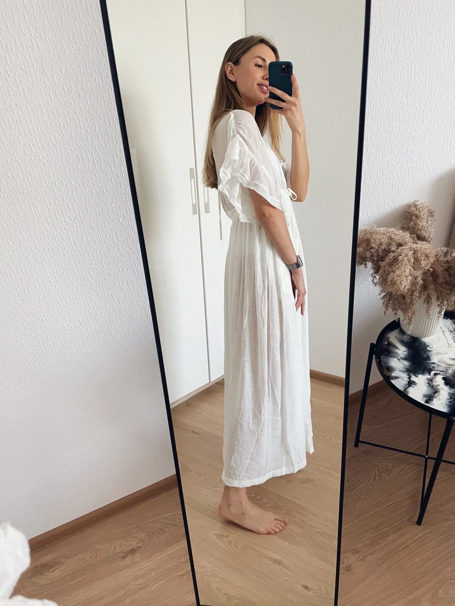 Шикарная накидка! Сидит идеально, размер подойдёт на S-XL так точно) прошито качественно, швы ровные, нитки не торчат.ткань мягкая, приятная к телу. По всему платью прошиты пуговички, размер можно регулировать завязкой на талии. Ткань летящая, лёгкая, на пляж просто супер! Красивый рукавчик, прошиты рюши. Доставка в Украину около трёх недель. Очень довольна заказом! Рекомендую продавца и магазин! :)