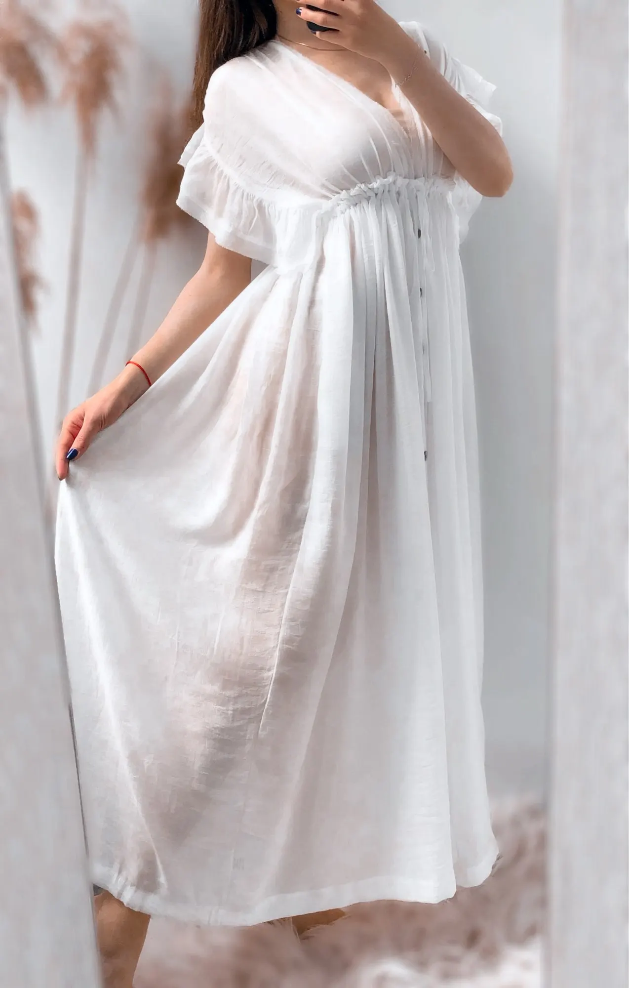 Женское пляжное платье-туника, однотонное белое парео, с рукавами-стойками