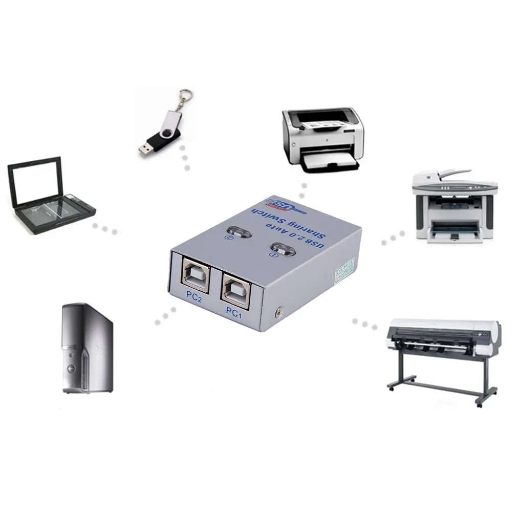 Концентратор с 2 портами USB 2,0, автоматический переключатель с компакт-диском для принтера, сканера, офиса