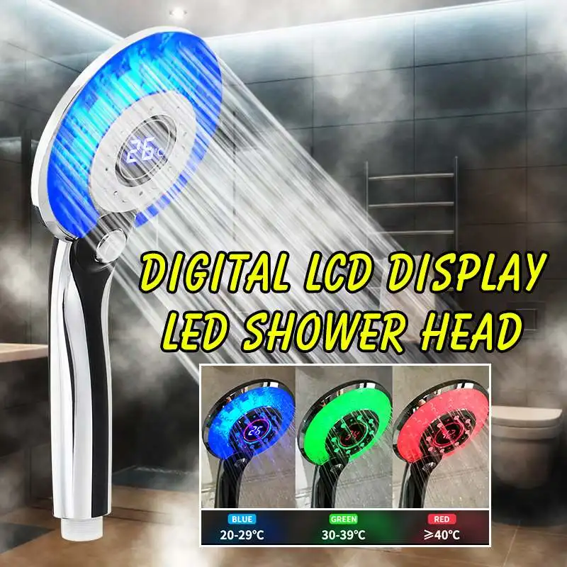 3 цвета светодиодный душевая головка цифровой ЖК-дисплей контроль температуры душа головка