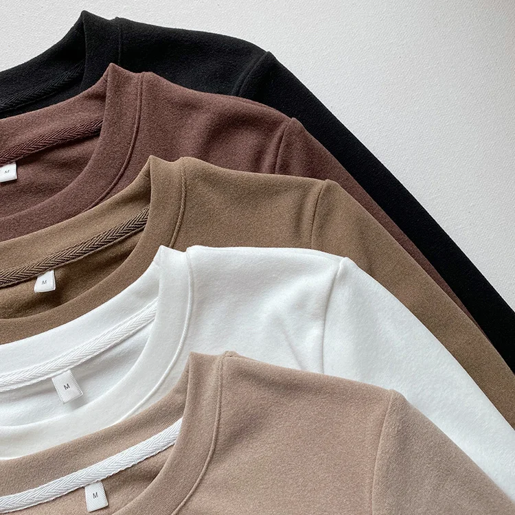 Женская осенне-зимняя футболка с круглым вырезом и длинными рукавами