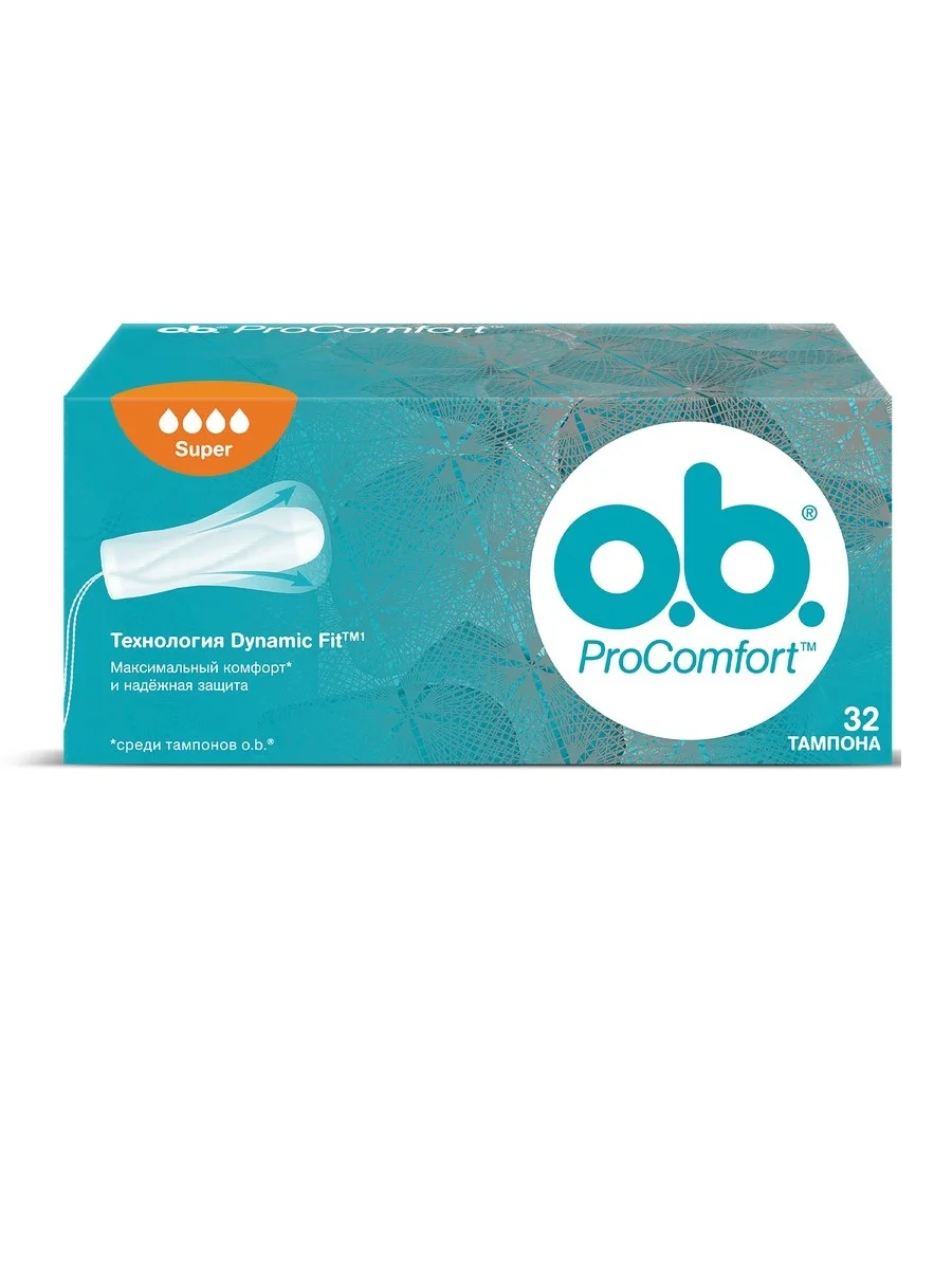 Тампоны o.b.® ProComfort Super для максимального комфорта (1) и надёжной защиты в дни с интенсивными выделениями. Женские тампоны ProComfort адаптируются к строению твоего тела сразу после введения благодаря технологии DynamicFit™ (ДайнэмикФит) с 3D раскрытием и эффективно помогают удерживать жидкость и перенаправлять ее в верхнюю часть тампона по переплетающимся желобкам. Шелковистое покрытие SilkTouch™(СилкТач) обеспечит лёгкое введение тампона. (1) среди тампонов o.b.®