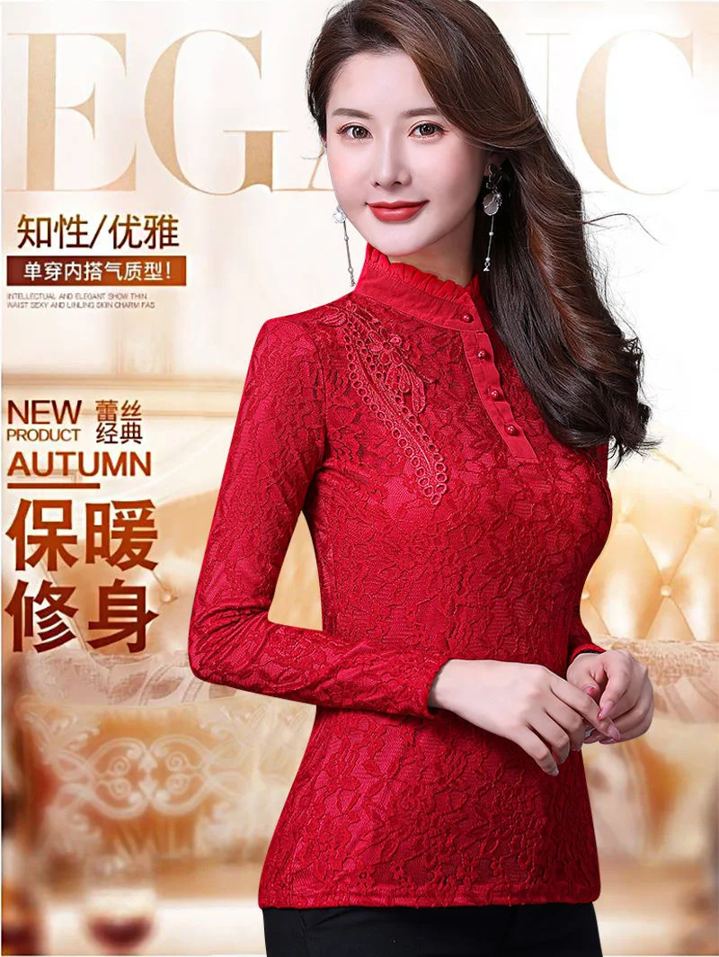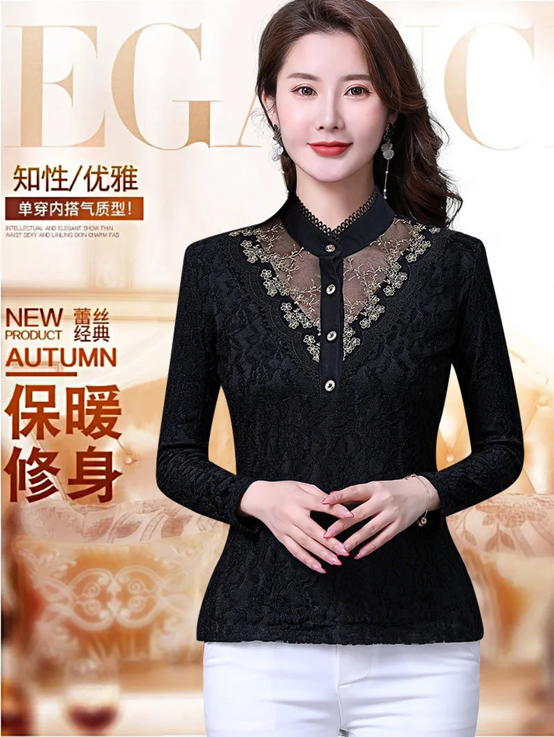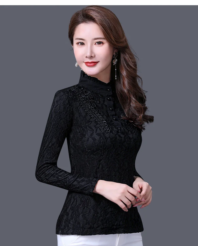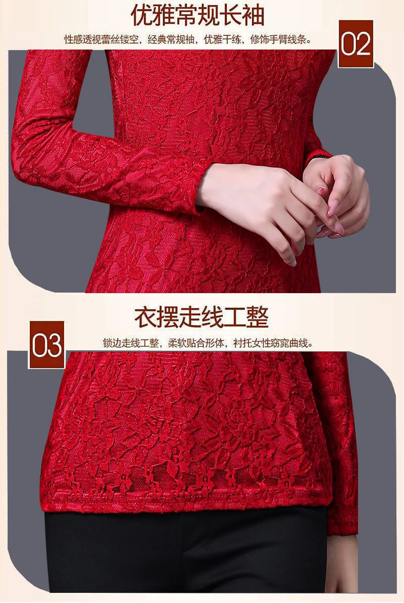 Женские футболки на осень и зиму, кружевной женский топ большого размера с длинным рукавом, женские топы, женские футболки