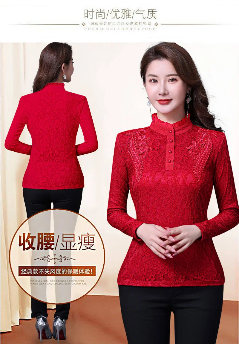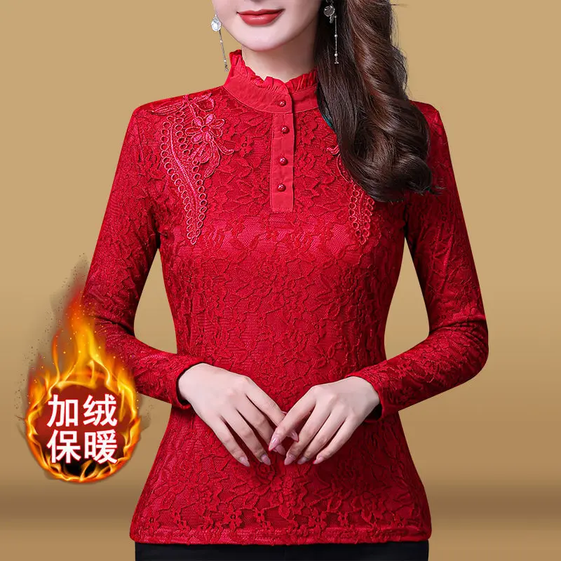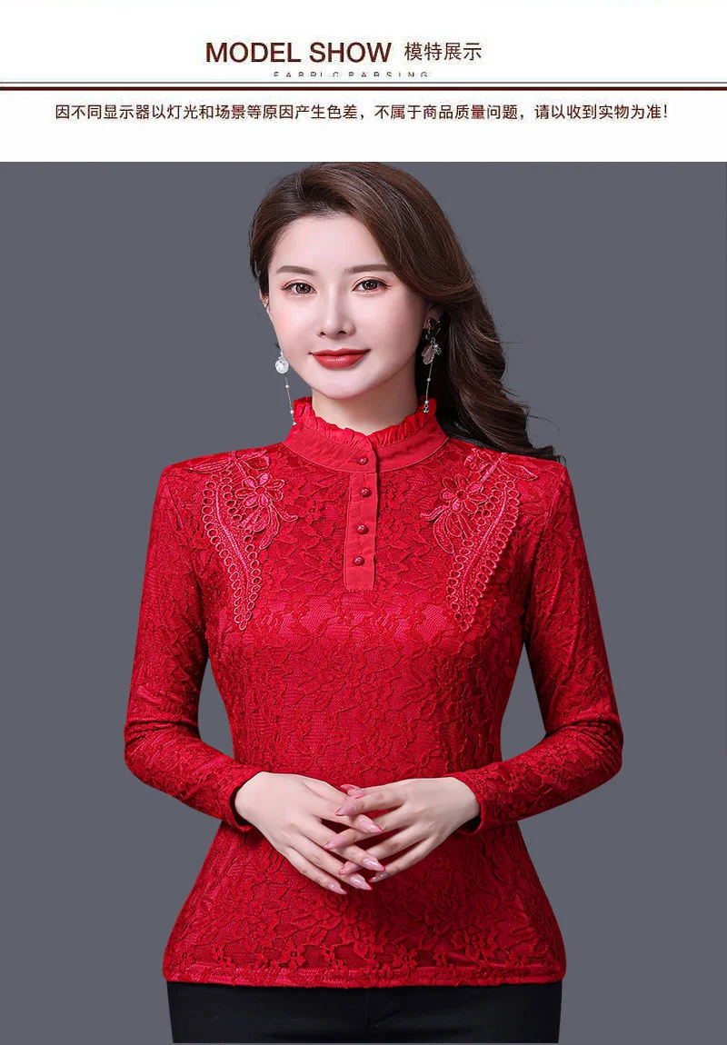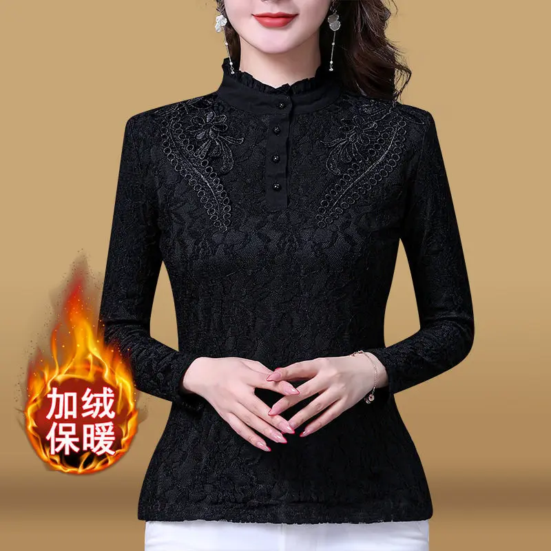 Женские футболки на осень и зиму, кружевной женский топ большого размера с длинным рукавом, женские топы, женские футболки